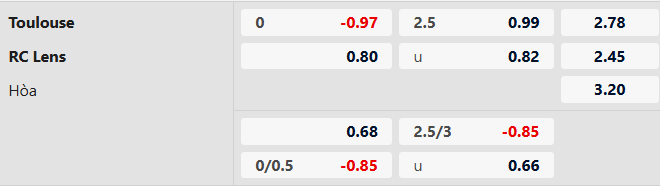 Thông tin tỷ lệ kèo bóng đá Toulouse vs Lens: