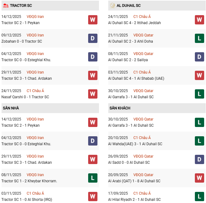 Phong độ 10 trận gần nhất của Tractor cũng khá ấn tượng khi thắng 5, hòa 4 và chỉ thua 1 trận. Trên sân nhà, họ thi đấu đặc biệt chắc chắn với 4 chiến thắng, 5 trận hòa và chỉ 1 thất bại trong 10 trận gần đây. Lối chơi kỷ luật, kiểm soát nhịp độ tốt giúp Tractor thường chiếm ưu thế trước các đối thủ có xu hướng chơi phản công như Al Duhail.
