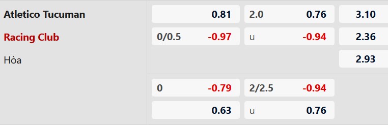 Thông tin tỷ lệ cược Tucuman vs Racing Club: