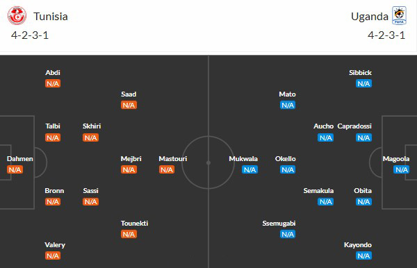 Thông tin lực lượng Tunisia vs Uganda: