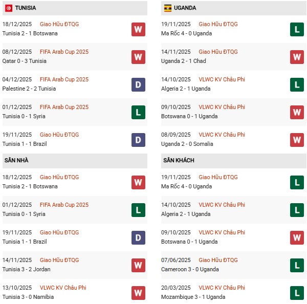 Thống kê phong độ Tunisia vs Uganda: