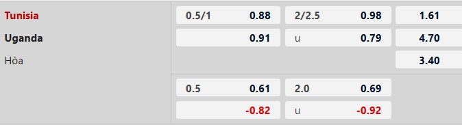 Tunisia thắng theo châu Á: Tunisia thắng cả 5 cuộc đối đầu giữa hai đội, thắng 7/9 trận chính thức gần đây. Trong khi đó, Uganda không thắng 6/9 trận vừa qua, thua cả 3 trận xa nhà gần nhất. Vì thế, giới mộ điệu có thể đặt niềm tin ở Tunisia trận này.