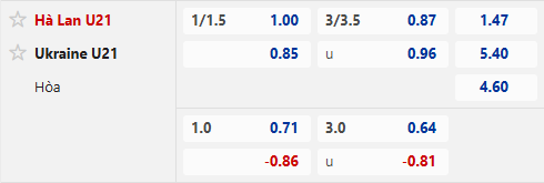 Thông tin tỷ lệ U21 Hà Lan vs U21 Ukraine: