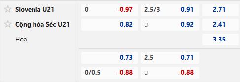 Thông tin tỷ lệ U21 Slovenia vs U21 Séc: