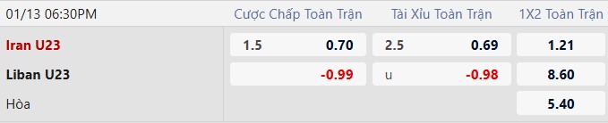 Thông tin tỷ lệ U23 Iran vs U23 Lebanon: