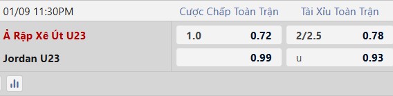 Thông tin tỷ lệ kèo U23 Jordan vs U23 Saudi Arabia: