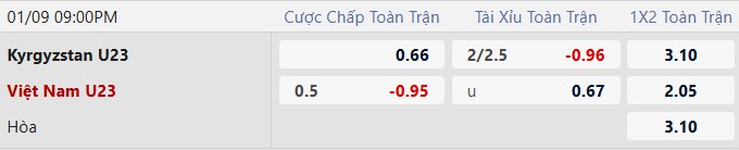 Thông tin tỷ lệ bóng đá U23 Kyrgyzstan vs U23 Việt Nam: