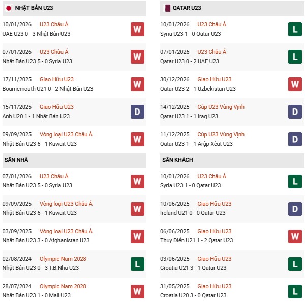 Thành tích đối đầu U23 Nhật Bản vs U23 Qatar:
