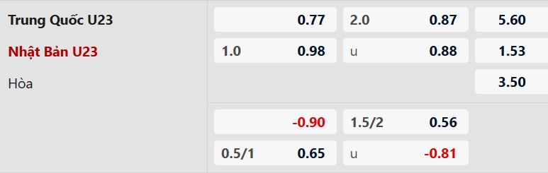 Thông tin kèo bóng đá U23 Trung Quốc vs U23 Nhật Bản: