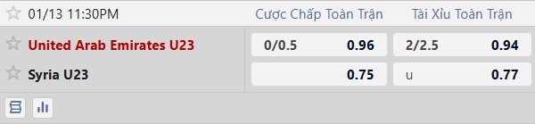 Thông tin tỷ lệ U23 UAE vs U23 Syria:
