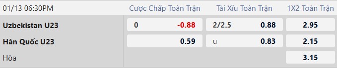 Thông tin tỷ lệ kèo U23 Uzbekistan vs U23 Hàn Quốc: