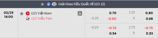 Thông tin tỷ lệ kèo U23 Việt Nam vs U23 Triều Tiên: