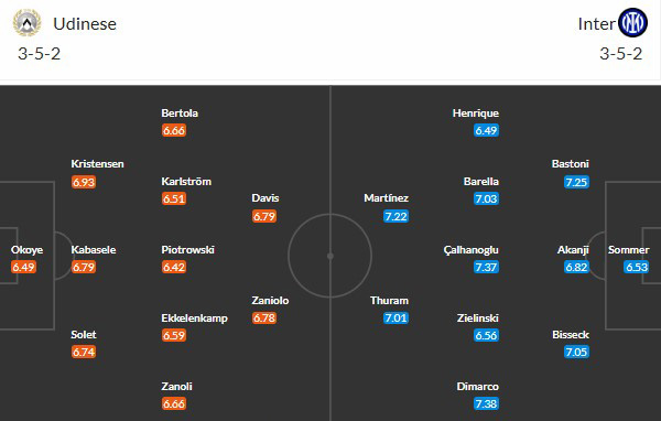 Đội hình dự kiến Udinese vs Inter Milan: