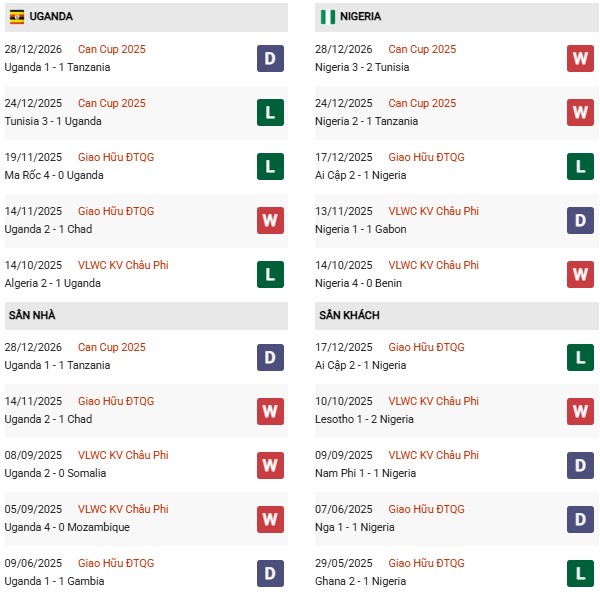 Uganda không xứng tầm đối thủ của Nigeria. Họ đang trải qua mạch 4 trận liền không thắng. Trong đó, tại AFCON 2025, Uganda thua Tunisia 1-3 và hòa Tanzania 1-1. Những kết quả tồi tệ đó khiến họ đang xếp đội sổ tại bảng C và có vẻ như ngày càng mất dần sự tự tin.