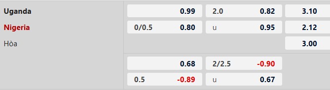 Tối thiểu 3 bàn cả trận: 5/6 trận đấu gần đây của Uganda đều kết thúc với tối thiểu 3 bàn thắng. Tình trạng tương tự xảy ra ở 3 trận gần nhất của Nigeria.