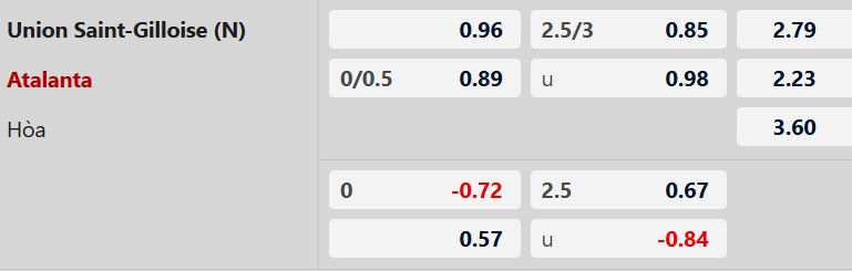 Thông tin tỷ lệ kèo Union SG vs Atalanta: