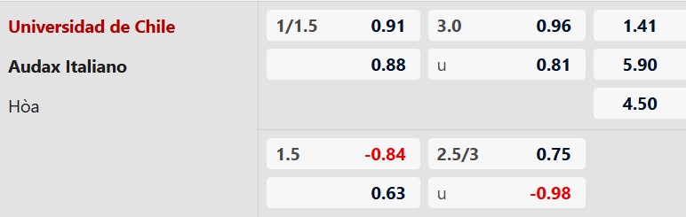 Soi kèo châu Á Univ de Chile vs Audax Italiano: