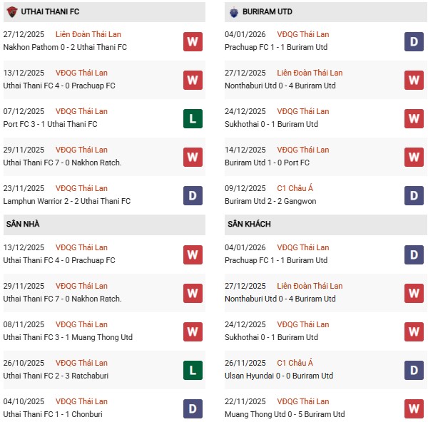 Điểm tích cực là phong độ gần đây của Uthai Thani có dấu hiệu khởi sắc rõ rệt khi thắng 6, hòa 1 và chỉ thua 3 trong 10 trận gần nhất. Tuy nhiên, trên sân nhà, sự ổn định của họ chưa thực sự cao với 4 chiến thắng, 2 trận hòa và 4 thất bại trong 10 trận gần đây, đặc biệt khi phải tiếp đón đối thủ vượt trội như Buriram.