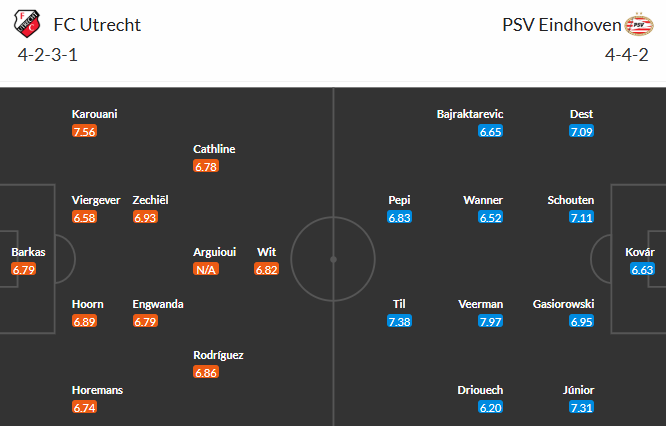 Thông tin lực lượng Utrecht vs PSV Eindhoven: