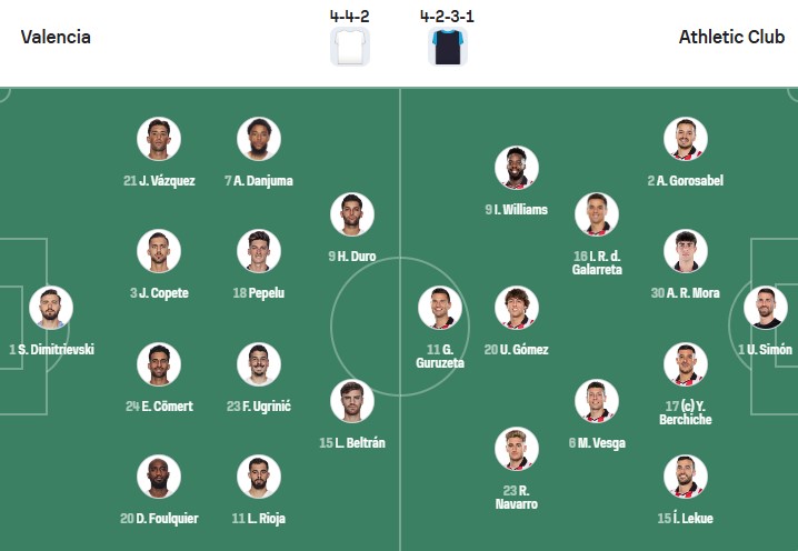 Đội hình dự kiến Valencia vs Athletic Bilbao: