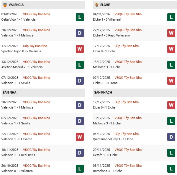 - Trên sân nhà, Valencia thắng 4, hòa 1 trước Elche.