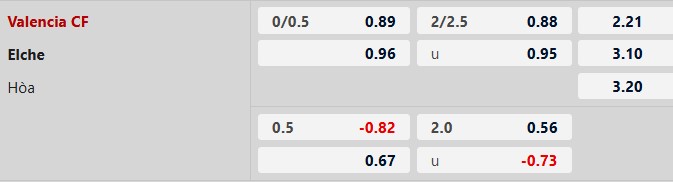 Thông tin tỷ lệ cược Valencia vs Elche: