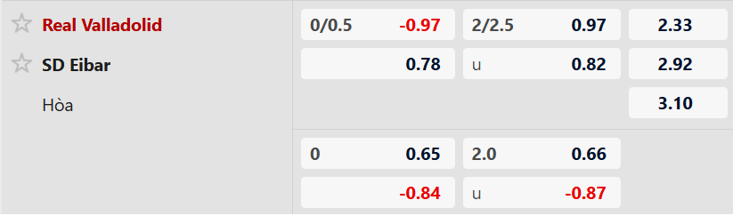 Thông tin tỷ lệ kèo Valladolid vs Eibar: