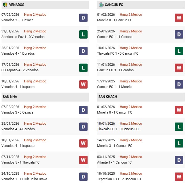 Phong độ gần đây của Cancun ở mức khá ổn định với 4 chiến thắng, 3 trận hòa và 3 thất bại trong 10 trận gần nhất trên mọi đấu trường. Trên sân khách, Cancun thi đấu tương đối hiệu quả khi thắng 5, hòa 2 và thua 3 trong 10 chuyến xa nhà gần đây. Tuy nhiên, đội bóng này thường tiếp cận trận đấu theo hướng thận trọng, ưu tiên kiểm soát thế trận hơn là đẩy cao nhịp độ.