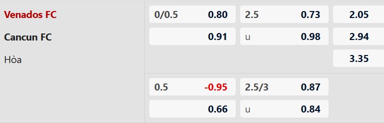 Theo kèo châu Á, Venados được xếp cửa trên với mức chấp 1/4 bàn, chủ yếu nhờ lợi thế sân nhà. Tuy nhiên, xét về phong độ tổng thể và sự ổn định, Cancun lại cho thấy bộ mặt tích cực hơn trong giai đoạn gần đây. Venados dù chơi chắc chắn tại tổ ấm của mình nhưng lại thiếu sự bùng nổ cần thiết để tạo ra lợi thế rõ ràng. Trong khi đó, Cancun thường chơi khá tốt mỗi khi làm khách và đủ khả năng giành ít nhất 1 điểm.
