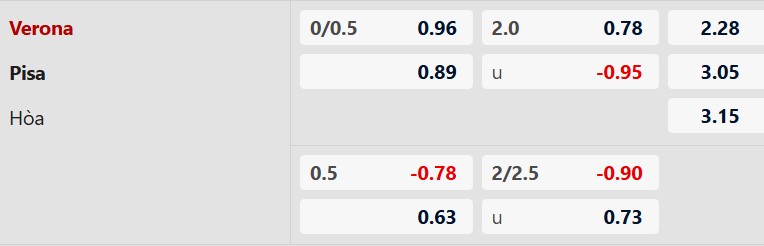 Nhận định kèo tài xỉu Verona vs Pisa: