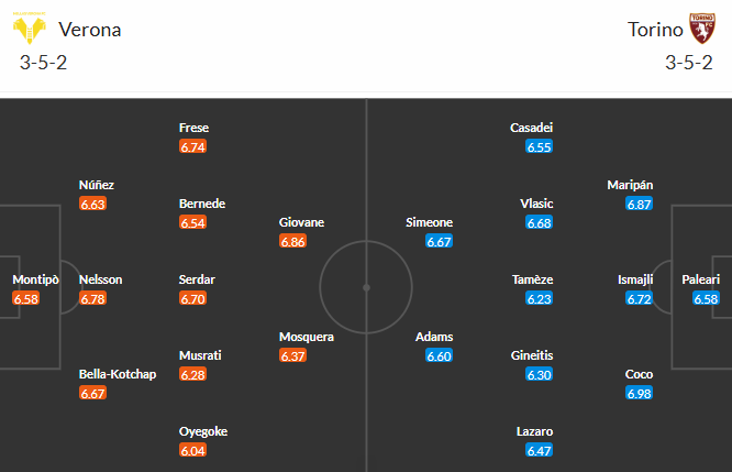 Đội hình dự kiến Verona vs Torino: