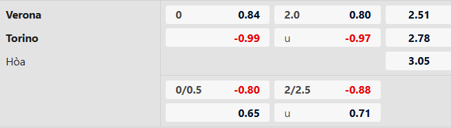 Thông tin tỷ lệ cược Verona vs Torino: