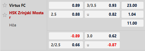 Thông tin tỷ lệ bóng đá Virtus vs Zrinjski Mostar: