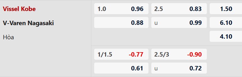 Thông tin tỷ lệ kèo Vissel Kobe vs Nagasaki:
