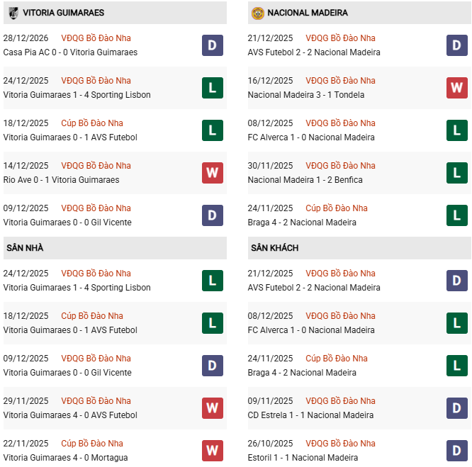 Thống kê phong độ Vitoria Guimaraes vs Nacional: