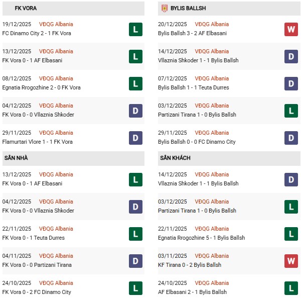 - Vora hòa 2, thua 4 trong 6 trận gặp Bylis Ballsh gần đây.