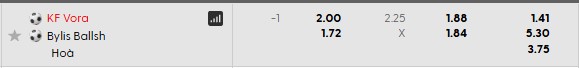 Thông tin tỷ lệ cược Vora vs Bylis Ballsh: