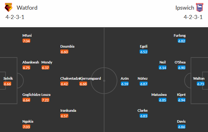 Đội hình dự kiến Watford vs Ipswich: