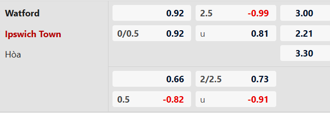 Watford chưa bao giờ được đánh giá cao về khoản tấn công nhưng đổi lại, họ thủ khá chắc. Riêng 7/8 trận gần đây của đội bóng này đã kết thúc mà không nhiều hơn 2 tình huống ghi bàn. Trong khi đó, Ipswich hoặc tịt ngòi hoặc nổ súng đúng 1 lần ở 6/9 chuyến làm khách mới nhất. Ngoài ra, 4/5 màn so tài cao thấp vừa qua giữa hai đội đều khép lại với dưới 3 pha lưới rung.
