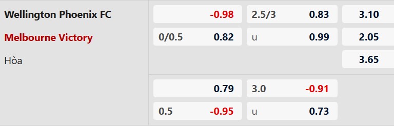 Thông tin tỷ lệ kèo Wellington vs Melbourne Victory: