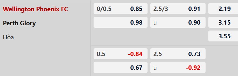 Thông tin tỷ lệ cược Wellington vs Perth Glory: