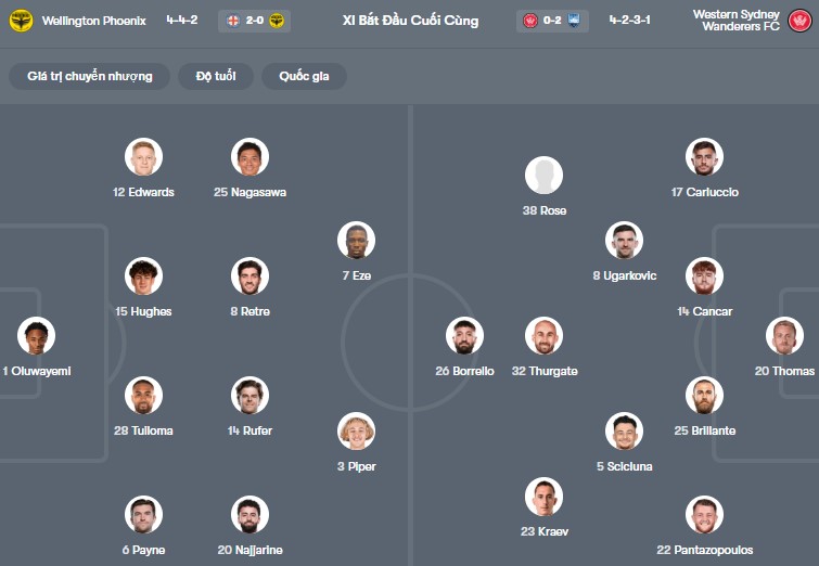 Thông tin lực lượng Wellington vs Western Sydney: