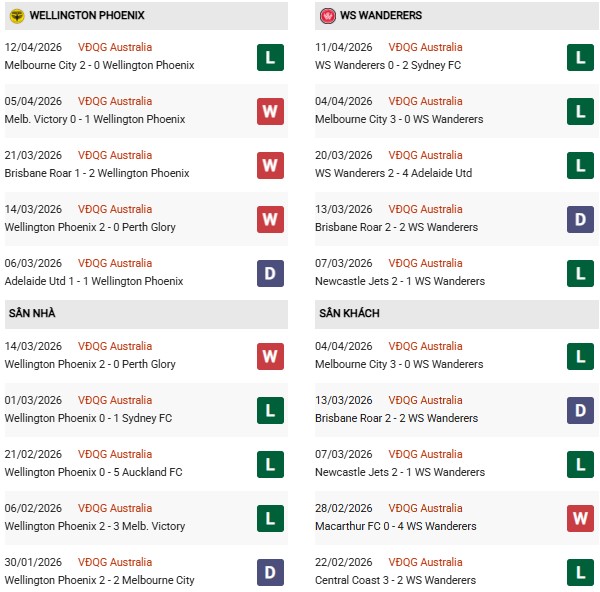 - Trên sân nhà, Wellington thắng 5, thua 2 trước Western Sydney.