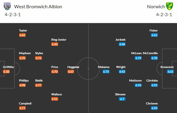 Hai đội đang giống nhau ở một điểm: số bàn thắng ghi được đang ít hơn đáng kể so với số lần thủng lưới. Tuy nhiên riêng Norwich đã 8 chuyến hành quân liên tiếp không tịt ngòi mà cũng chẳng giữ sạch lưới, làm cho 5 cuộc chơi khép lại với tối thiểu 3 tình huống lập công. Kịch bản hoàn toàn tương tự còn xuất hiện ở 4/5 trận sân nhà mới đây của West Brom.