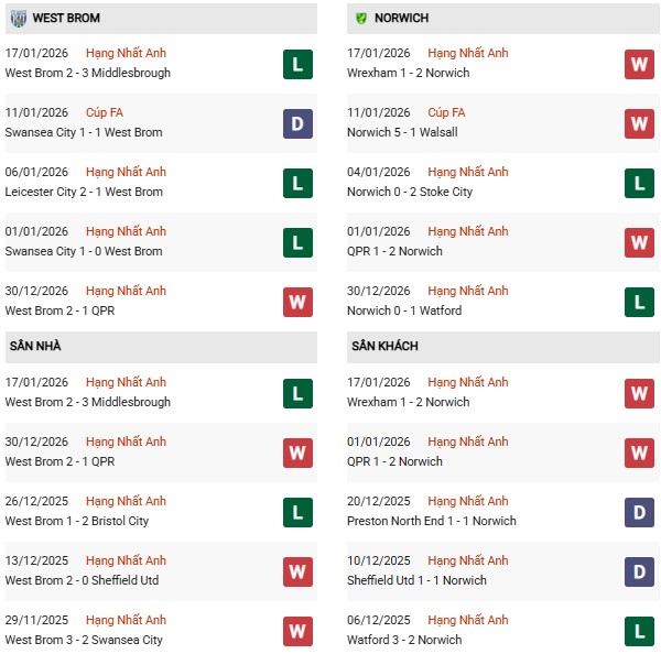 Thực ra kể cả trong giai đoạn khủng hoảng nhất dưới triều đại cũ Ryan Mason, West Brom vẫn rất biết cách giành điểm tại sào huyệt, kể cả 3 trọn vẹn. Chẳng thế mà từ tháng 9/2025 tới giờ, The Baggies chưa từng không thắng 2 trận sân nhà liên tiếp và nếu "quy luật" này vẫn đúng thì đương nhiên trận này sẽ phải là chiến thắng.
