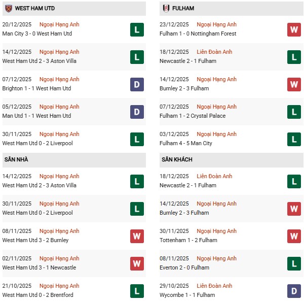 - West Ham thắng 5, hòa 3, thua 2 trong 10 trận gặp Fulham gần đây.