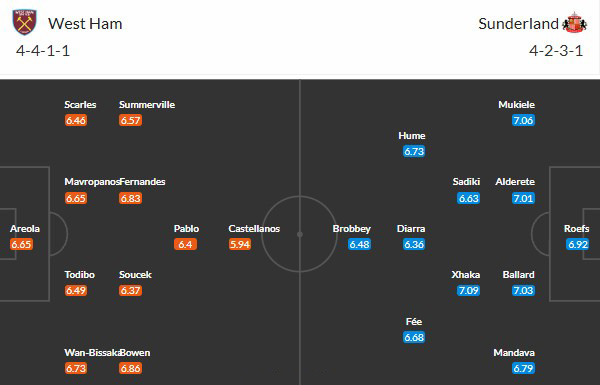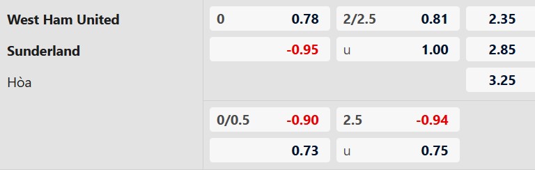 Thông tin tỷ lệ bóng đá West Ham vs Sunderland:
