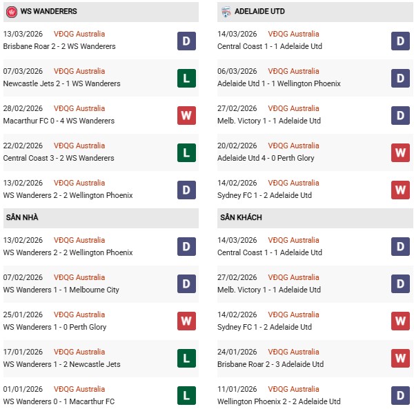 Thống kê phong độ Western Sydney vs Adelaide: