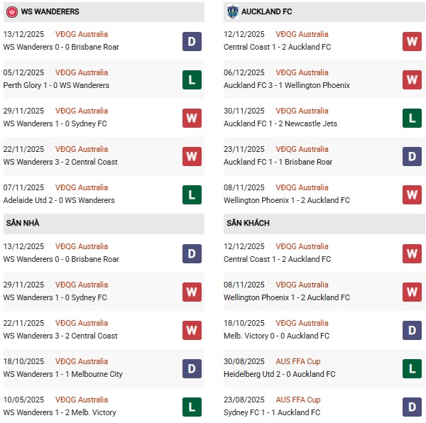 - Western Sydney hòa 1, thua 2 trong 3 trận gặp Auckland gần đây.