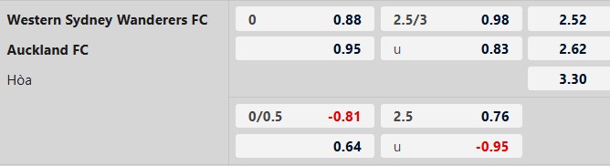 Thông tin tỷ lệ kèo Western Sydney vs Auckland: